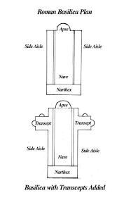 There first impact on modern times was the development of the basilica, which was in the shape of a cross.